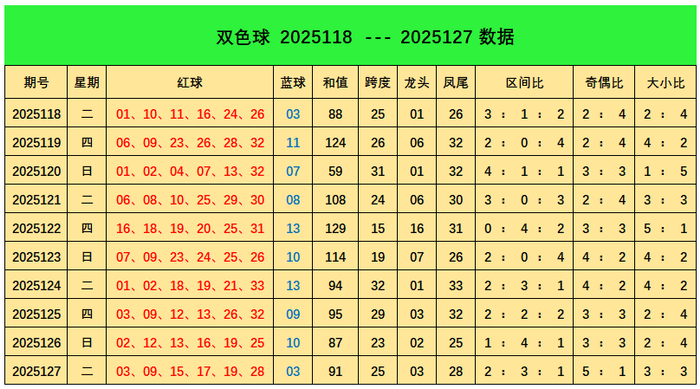 上期开奖:福彩双色球第2025126奖号开出:021213161925+10,红球号码和值为87,首尾间距为23冠鸿生科技有限公司,包含连号:1213。 福彩双...