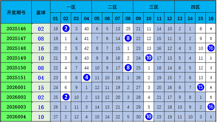 上期蓝球中奖号码为10,近10期蓝球概括奇偶比1:9,偶数走势占优,本期推选偶数04。
